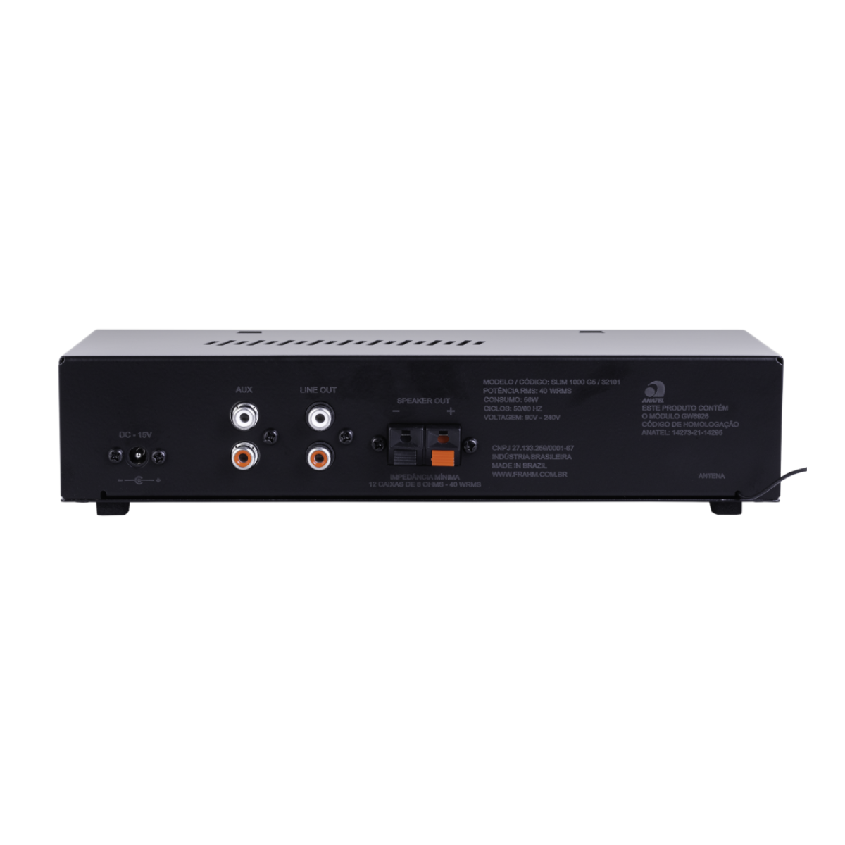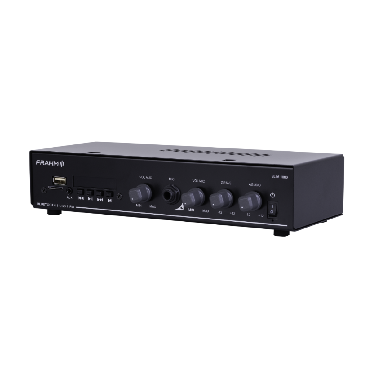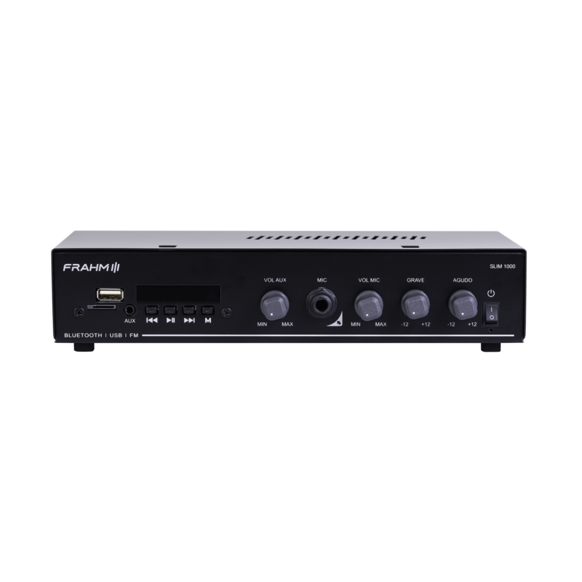 A quinta geração (G5) da linha nº1 em amplificadores comerciais do Brasil chegou para elevar o padrão de sonorização de pequenos e médios ambientes. O Frahm Slim 1000 G5 une um visual único e moderno à confiabilidade técnica que só a líder de mercado oferece. Com 40W RMS de potência em Classe AB, este amplificador entrega fidelidade sonora e versatilidade em um formato compacto e elegante.