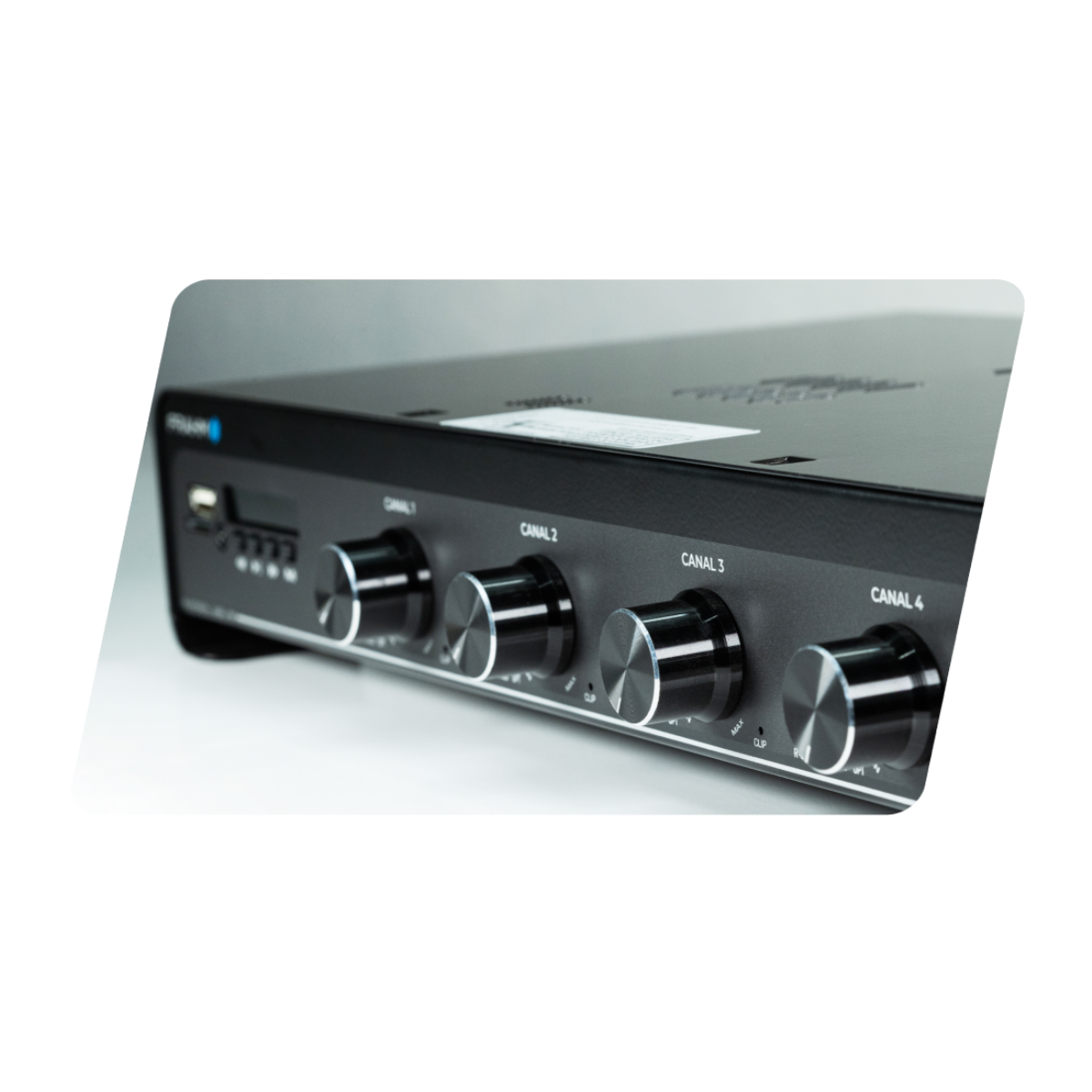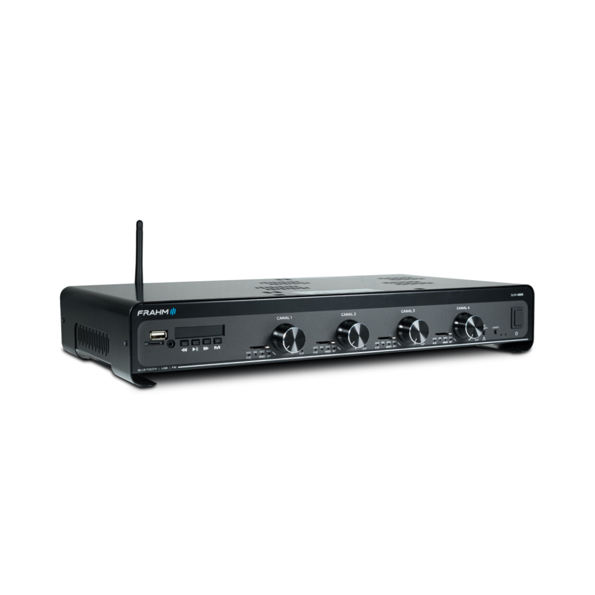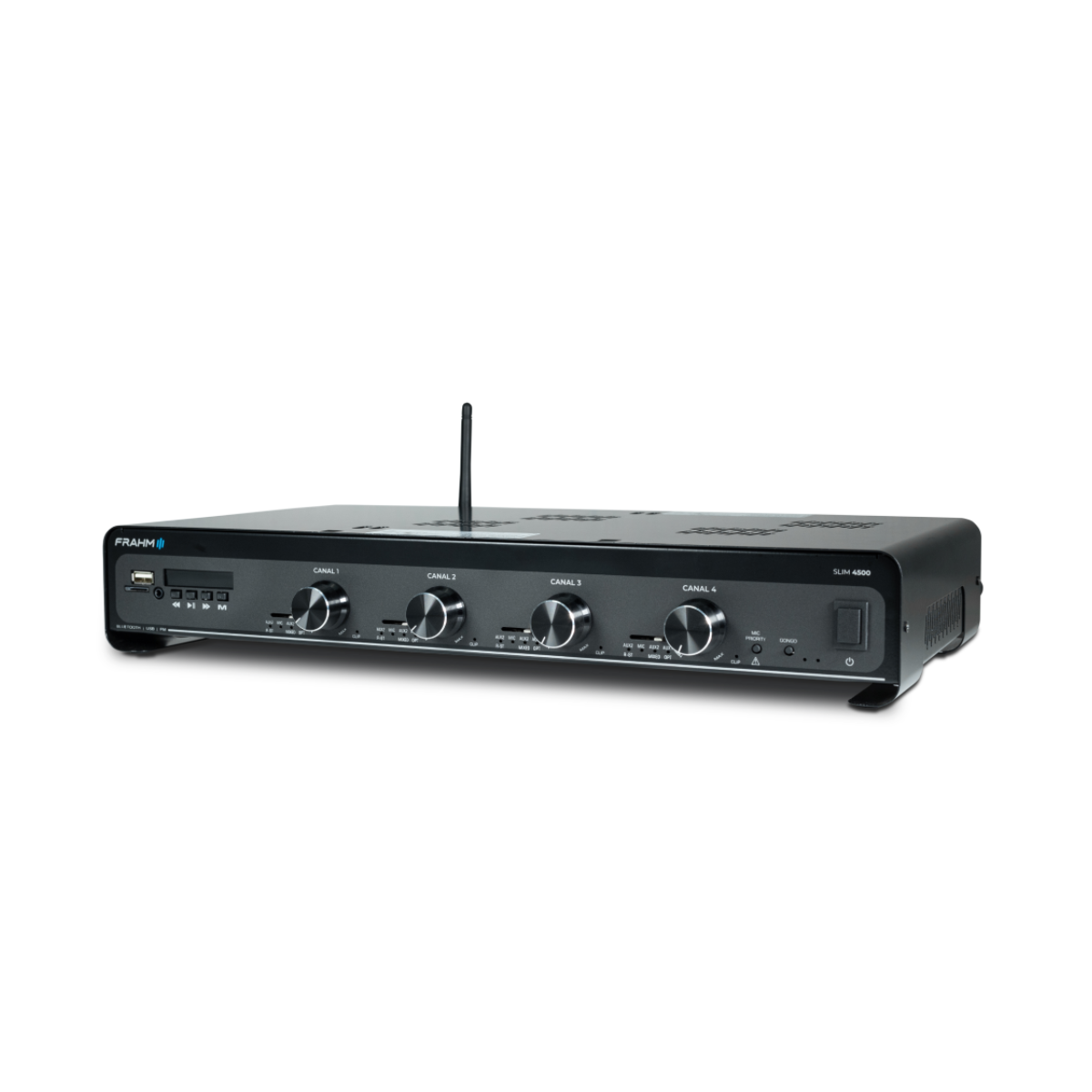 O Amplificador Frahm Slim 4500 Optical G5 é a solução definitiva para sonorização de grandes ambientes e projetos que exigem setorização, unindo potência bruta, inteligência e versatilidade. Com impressionantes 480W RMS divididos em quatro canais independentes de 120W, esta quinta geração da Frahm permite sonorizar até 4 áreas distintas com controles de volume e seleção de sinal separados, oferecendo performance profissional em um design robusto e inovador.